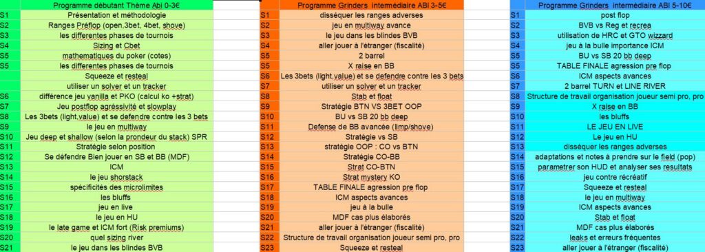 Les séances seront variées entre théorie Gto / technique et séances vos reviews personnelles .